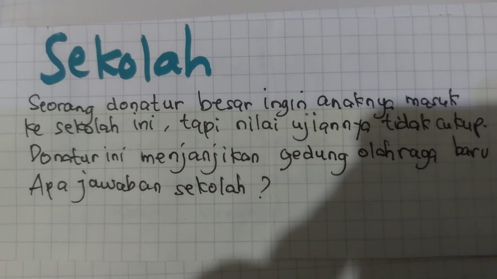 Plis, kami di SDIT Bening saja sudah mulai membangun kebiasaan berbicara yang santun termasuk membuka ruang-ruang diskusi terkait dengan penanaman kepribadian ini. Para siswa SD yang terbukti melakukan hal-hal bullying dari hal-hal kecil seperti mengucilkan teman, memfitnah, hingga melakukan kekerasan melalui “Bombastic side eye”, semua akan mendapatkan ruang nasihat dan diskusi. Apalagi belum tentu orang tuanya mengajarkan toh? Yes , bahkan saya beberapa kali mendengar orang tua yang menganggap “Mukul itu mah wajar, nakal mah wajar, namanya juga anak laki-laki”.
