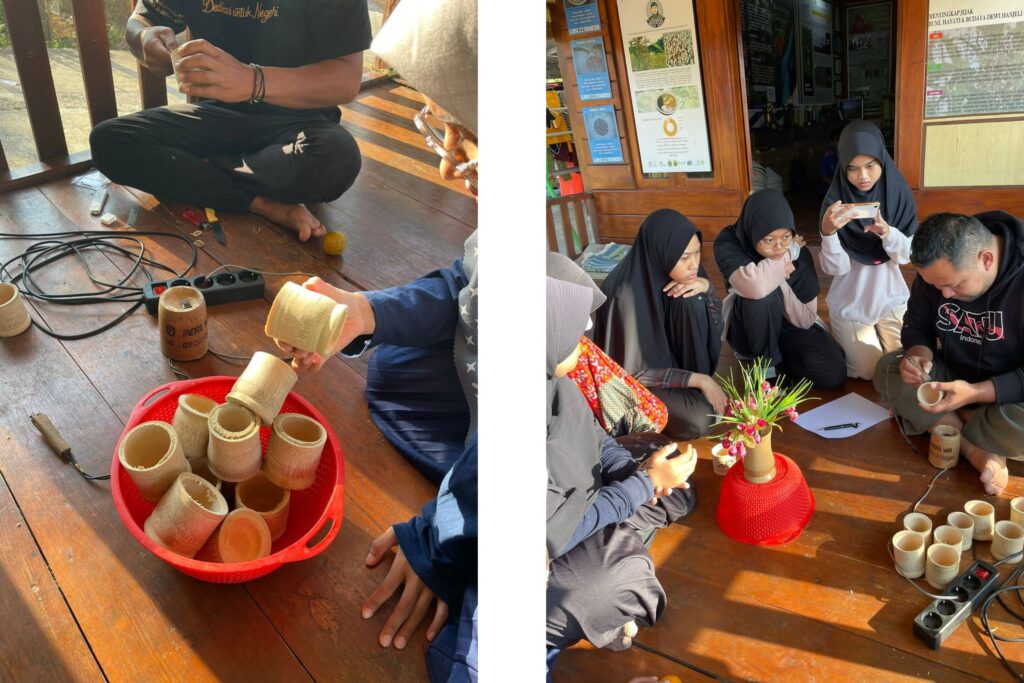 Aktivitas hari terakhir para kafilah 3 dan 4 di Desa Hanjeli dimulai dari pukul 7.00 pagi. Pagi hari, anak-anak melakukan proses finishing membuat gelas bambu. Mereka mencoba mengukir nama di gelas bambu menggunakan alat solder phyrography . Alat tersebut dibuat sendiri oleh kang Indra sebagai pengrajin gelas bambu. Selanjutnya gelas bambu tersebut diamplas dan dipernis.